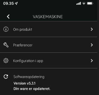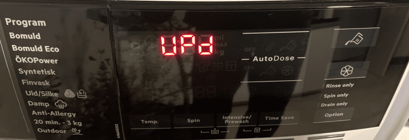 Akonáhle je aktualizácia nainštalovaná, UPd zmizne z displeja a aktualizáciu uvidíte v nastavení spotrebiča. Ak sa počas inštalácie softvéru na displeji zobrazí ERR, došlo k chybe a musíte skúsiť práčku vypnúť a potom znovu spustiť prací program. Príklad spotrebiča, ktorý bol aktualizovaný: